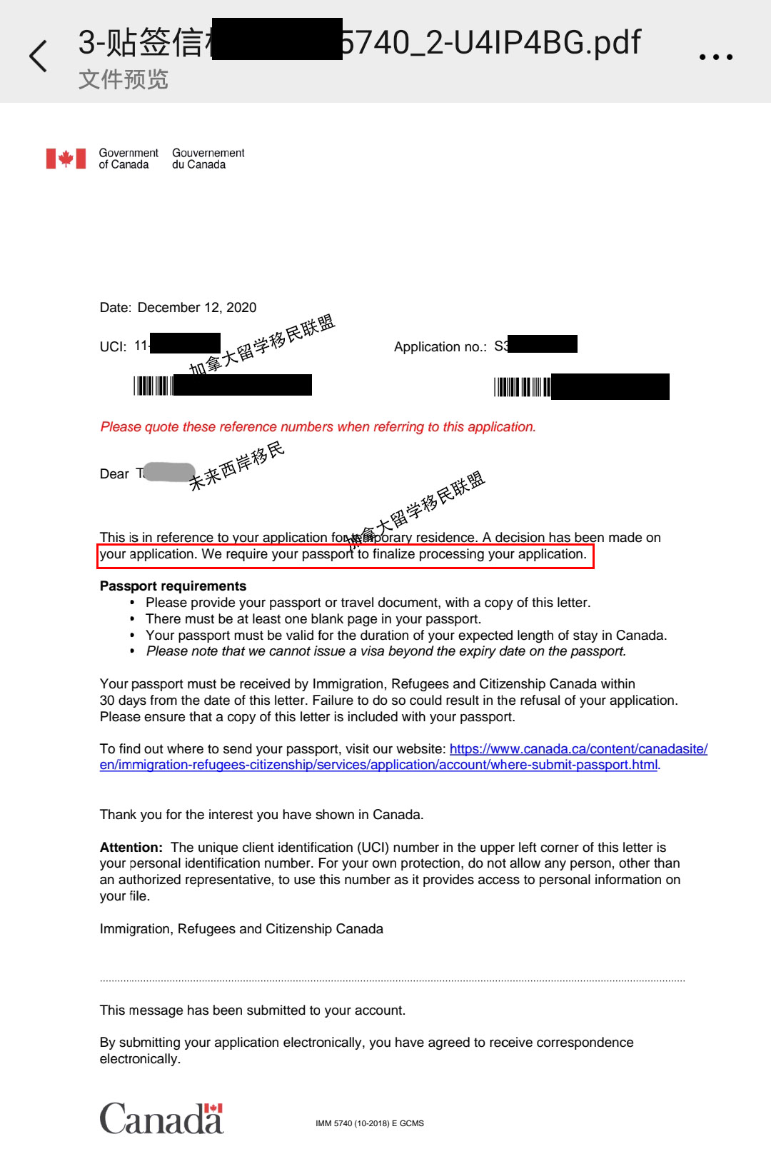 学签:3月提交,8月获批第一阶段通过信,12月获批学签