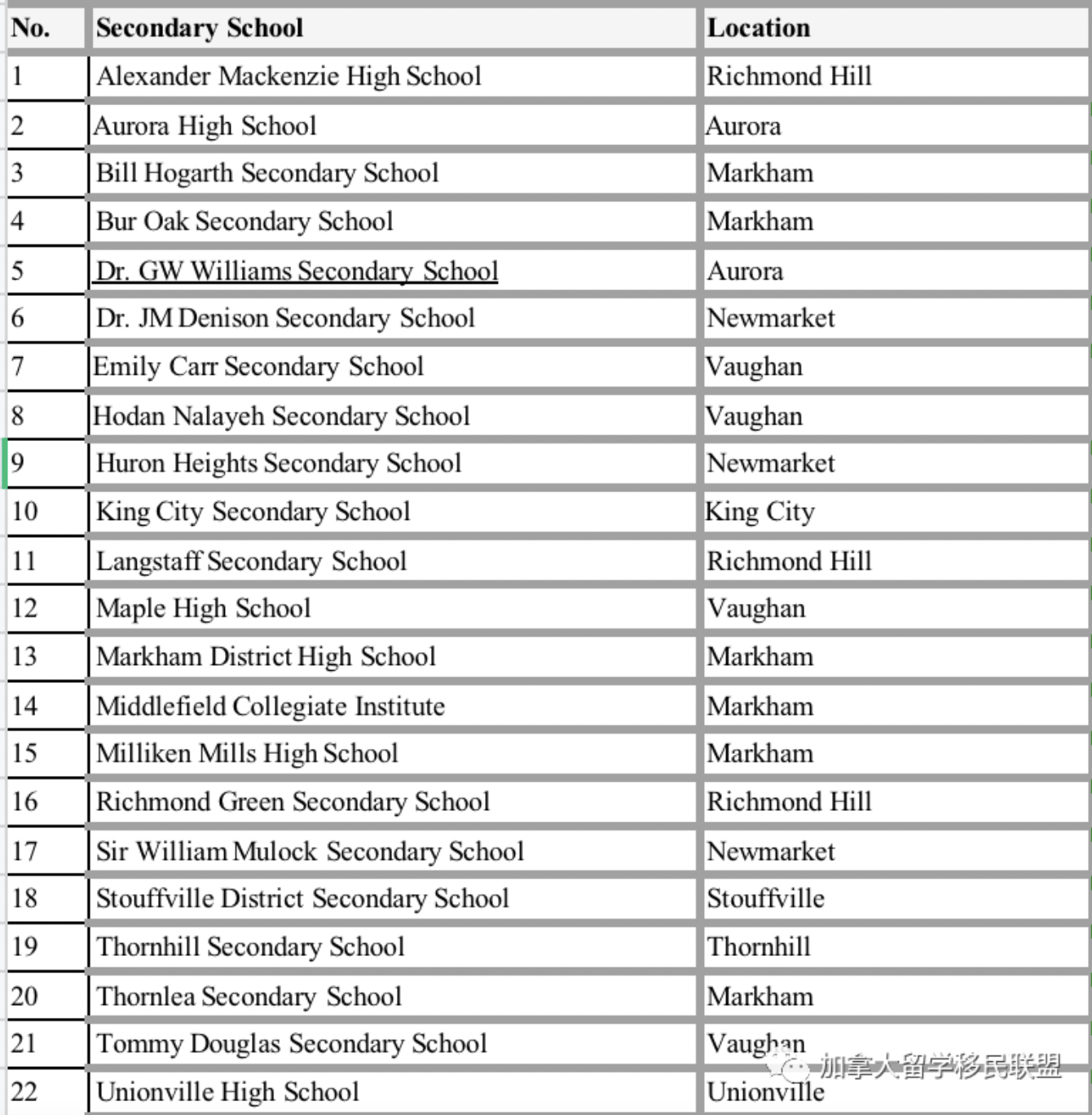 约克教育局下属有47所小学接受国际学生的申请,从选校来说,关键还是小学对应未来的中学,安省排名靠前的学校,同时又接受国际学生的,约克教育局是占比比较多的。因此还是建议大家抓紧时间,尽快申请,越到后面所剩的学校就越少。